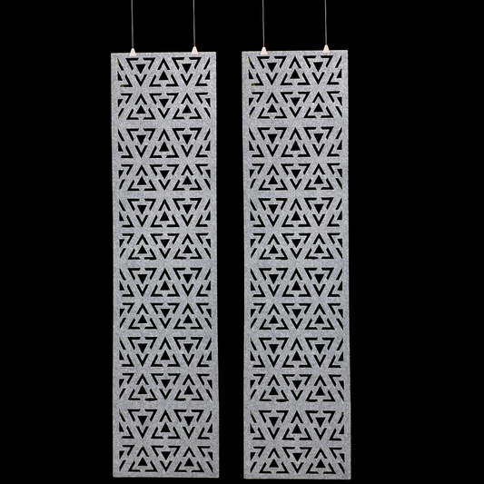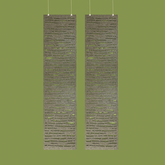 Roikkuvilla PET-tilanjakajilla erotat tiloja helposti ja parannat tilan akustiikkaa. Roikkuvia sermejä on helppo asentaa ja myöhemmin helppo siirtää.