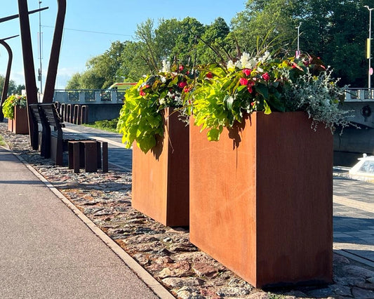 CORTEN-TERÄKSISET KUKKARUUKUT JA ISTUTUSLAATIKOTTäydellinen yhdistelmä muotoilua ja kestävyyttä moderniin ulkotilojen...