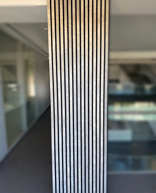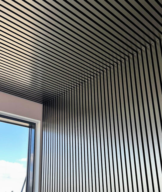 Akustiikkapaneelit ovat ihanteellisia käytettäväksi tiloissa, joissa kaiku aiheuttaa ongelmia. Huopapohjainen akustinen suodatin imee ääniaallot ja rimamuoto ei heijasta ääntä takaisin tilaan.