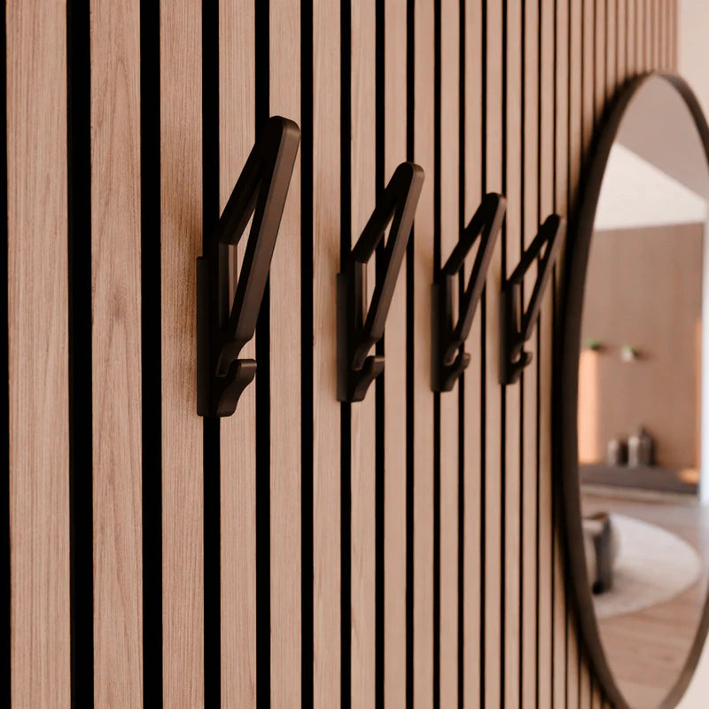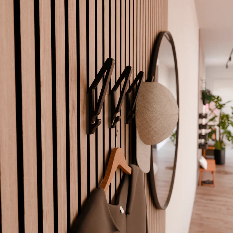 Viimeistele akustiikkapaneeliseinä käytännöllisesti ja tyylikkäästi ripustuskoukku. Se sulautuu saumattomasti paneelien ilmeeseen. Koukku tarjoaa helpon ja muunneltavan tavan ripustaa tavaroita ilman pysyviä kiinnityksiä tai työkaluja.